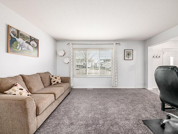 Spacious two story located on a quiet cul-de-sac with a wooded back yard! Space for everyone on the main floor includes a front living space/flex space, a designated dining room and an open concept plan that offers a large family room that's open to the kitchen. Kitchen has plenty of space to move around w/ island, pantry and eat in space! Family room offers tons of natural light, a fireplace, hardwood floors and access to a large deck. First floor laundry room and 1/2 bath add extra convenience. Upstairs find a huge owner's suite with vaulted ceilings, walk in closet, dual vanity and shower. Additional three bedrooms are generous in size and share a second full bathroom. Extra finished space w/ half bath in this full basement offers endless possibilities for entertaining and additional living space. Outside find a deck with beautiful views of a tree lined back yard. Neutral carpet and paint, dimensional roof, high efficiency furnace, upgraded windows make this a turn key opportunity!