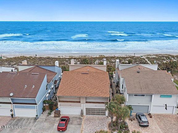 Stunning Oceanfront townhome, perfectly situated in charming Neptune Beach. Totally renovated w/ sleek & sophisticated contemporary lines, designer finishes throughout & beautiful wood floors throughout. First floor features an elegant kitchen w/upgraded ss appliances, wood cabinets & white quartz counters. A breakfast bar & wet bar w/wine cooler, dining area w/shiplap walls overlooking spacious living/great room w/fireplace & wall of glass doors that open completely to large oceanside deck w/seating, powder room & huge pantry too. Upstairs has primary suite w/luxurious, oversized, updated bath. 1 Large custom walk in & 2nd large closet. Wall of glass doors to panoramic Oceanview deck. 2 other good-sized bedrooms and bath up. Elevator for easy access . Garage with epoxy floors and shelving. Pavered drive & private side entry. Seller has done many recent upgrades, including newer upper and lower decks, new HVAC in garage, new exterior paint. Hurricane shutters on every window.