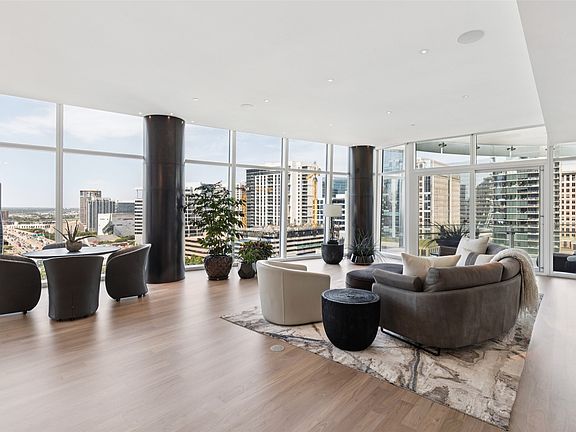 Experience unsurpassed 360-degree views of scenic Klyde Warren Park and Fountains, direct showstopping downtown views, Nasher Sculpture gardens and the entire Dallas Arts District from this rarely available full floor residence inside iconic Museum Tower. Sunlight pours in from every direction through glistening floor to ceiling glass panels. This thoughtfully designed home masterminded by Bernbaum Magadini Architects delivers comfortable private living spaces, formal dining and entertainment areas, and separate guest quarters all on one level. Louis Gloria high gloss wall finishes, Christopher Peacock cabinetry, plus Hudson Construction group all contribute to unsurpassed high end finishes. 2 banks of private and direct elevator access plus 2 private patios offer a rare and exceptional amenity.