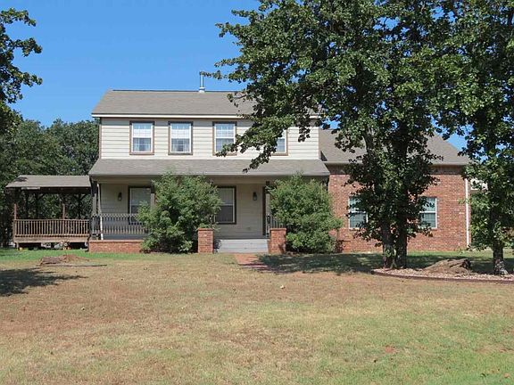 What a charmer……. Take a look at this quaint, cozy, two-story home situated on a lovely large lot with beautiful old oak trees. The home was built in 1997 in what is now the Cross Timbers Two Subdivision. Features of this charmer consists of a large living room with a free standing wood burner fireplace, a large kitchen with granite countertops, electric appliances, nice cabinets, and dinette area. The formal dining room leads to the outside large covered deck through French doors, surrounded by beautiful trees……such a peaceful setting. A half bath is just off the kitchen. All bedrooms are upstairs as well as two full bathrooms. There is a huge room over the three car garage that could be a fourth bedroom or game/family room and has two huge storage areas for off-season items. You will find plenty of storage throughout the home. This is a lovely area close to Stillwater and Highland Park Elementary School. The paved roads are definitely a plus! Great updates include new hot water tank, fresh paint, aerobic septic system. New carpet to be installed in upstairs master bedroom, hall, and staircase.