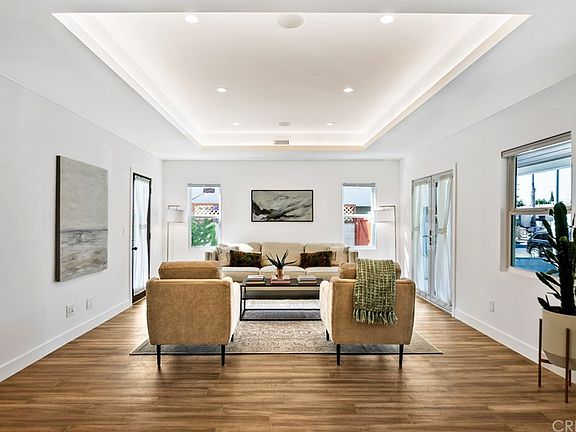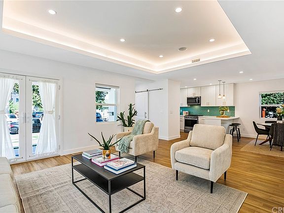 Completely remodeled with carefully considered upgrades, this is a home of style and substance. A covered porch looks out on the functionally beautiful driveway with inset grass borders that continues to the side yard for private parking or extended living. Feel a warm welcome upon entry and enjoy the impeccable interior throughout with fine finishes. The open concept living area offers recessed ceilings with LED lighting & a speaker system that continues throughout. Crisp white soft closing cabinets, stunning glass tile backsplash & fingerprint-resistant Whirlpool appliances elevate the kitchen. Make your way to the bedrooms which are light-filled & look out to lush greenery. The primary suite offers an impressive walk-in closet and beautifully remodeled en-suite bath. Bathrooms feature custom stone surfaces and premium vanities with no detail missed. Step outside to an entertainer's dream backyard with BBQ hookups and a perfectly manicured lawn. You will find a detached garage that would make a great income-generating ADU and it is car-charger ready. The property has exterior security cameras, automatic sprinklers, and zoned LAR1.5. Smart features include Nest thermostat and wifi enabled garage door opener and oven. Contact us for a list of amenities!