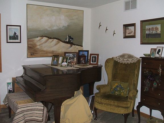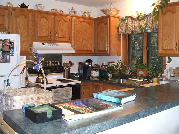 Lake view cozy Chalet with brick fireplace and decks off great room & master bedroom. Lots of windows to capture beautiful views. Attractive Oak kitchen with breakfast bar. Master bedroom suite has cathedral ceilings, 2 person whirlpool tub, shower stall and laundry room. Roomy lower level for future family room, bedroom & rough plumbing for half bath.