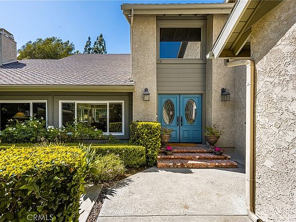 Welcome to 19180 Palm Vista | Yorba Linda, Nestled in a peaceful cul-de-sac at the heart of the city, this completely remodeled estate exudes a rare blend of luxury and country charm. Situated on a stunning and exceptional lot of over 24,000 square feet, the property offers an expansive park-like setting with incredible privacy and natural beauty. As you step inside, the grandeur of this custom home is immediately apparent, with soaring ceilings, spacious rooms, and wide hallways. The living room is a statement of elegance, featuring walls of windows that bring in natural light, custom wood cabinetry, and a beautiful stone fireplace. The chef’s kitchen is a dream, equipped with high end appliances, quartz countertops, white cabinetry, an island for seating and entertaining, and a cozy breakfast nook for morning coffee. The dining area is equally impressive, with stunning views through walls of windows, custom lighting, and ample space for hosting large gatherings. Off the kitchen, a reading room and office with its own fireplace provide a peaceful retreat for quiet moments. The main floor also includes a laundry room, guest bedroom, and a full bath. Upstairs, a grand staircase leads to the primary suite, a true sanctuary. This expansive retreat offers a sitting area, a private balcony with sweeping views of the lush grounds, and stunning sunsets. The luxurious primary bath is a spa-like haven, complete with a soaking tub, dual vanities, a walk-in shower, and custom-built closets—all beautifully remodeled with the finest finishes. The upper level also includes three generously sized bedrooms and a beautifully updated shared bath. Outside, the grounds are nothing short of spectacular. A sparkling pool and spa are surrounded by mature trees and vibrant flower beds, creating a serene environment for relaxation. The sports court is perfect for year-round fun for both kids and adults. Multiple patios and expansive lawn areas make this home ideal for entertaining. Rarely does a home of this magnitude come available in the perfect setting. Located in an award-winning school district and just steps from a beautiful neighborhood park, this home’s central location offers convenience and an exceptional lifestyle. Minutes from shopping, dining, community center, library, and everything that makes Yorba Linda our favorite city!