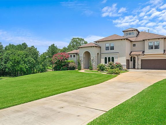 Experience luxury living in this stunning custom home featuring 5 spacious bedrooms, 4 full baths, and 2 half baths. Thoughtfully designed for both comfort and sophistication, this home includes a primary suite and guest en-suite on the main level, perfect for privacy and convenience. Impeccably built and beautifully maintained, it offers elegant indoor and outdoor spaces ideal for entertaining. The chef-inspired kitchen boasts premium appliances and designer finishes, while the custom library and an additional office space off the game room provide the perfect settings for work or study. Each bedroom includes a generous walk-in closet, and the lush, landscaped grounds showcase scenic views from every window. Enjoy direct canal access to Lake Conroe, creating the ultimate retreat for relaxation or recreation. With top-of-the-line kitchen appliances and window treatments included, this move-in ready home is truly one of a kind a rare blend of elegance, comfort, and waterfront living.