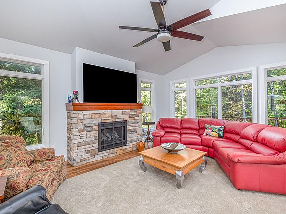 Stunning, custom craftsman raised ranch home on the high banks of the Muskegon River in The Bluffs subdivision just south of Big Rapids, Built in 2020, this beautiful home features 3 bedrooms, 2.5 baths, 3 car attached garage. Fantastic layout with spacious open living, dining room with fireplace, windows galore & open to large deck. Gourmet kitchen w cherry cabinets, solid surface counter tops, pantry, island & more. Main floor master suite with ample closet space,, walk-in tile shower and first floor laundry. Lower walkout level features 2 bedrooms, full bath, family room currently used as in-home gym, and tons of storage space. Walkout to patio overlooking woods that lead to river. Private, gorgeous setting. Many added amenities. Schedule private showing today!