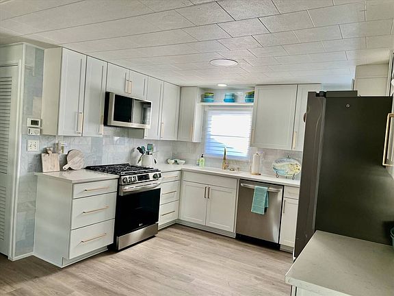 Location!! Enjoy Sarasota Living Just 3 miles from Siesta Key Beaches! This exceptional 1200 sf home with large brick patio in an active adult community has been completely renovated and has new kitchen and bathrooms plus luxury vinyl plank flooring throughout. The open floor plan in family/dining room and kitchen has shaker cabinets, new stainless steel appliances, including gas stove, quartz countertops and a marble backsplash. The main and hall baths have vanities with marble countertops and showers have sliders. The main suite has a large bedroom with plenty of closets and a full bath. Property includes 2 large sheds and hookups for a washer and dryer. Enjoy this friendly community with pool, bocce ball and shuffle board courts. Weekly bingo, card games and social activities.