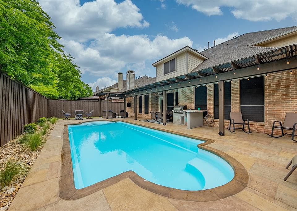 Stunning Sotherby designed dream home in West Allen! OVER $125K of upgrades including fresh paint, pool, BOB fence, pergola, plantation shutters, kitchen renovation, new appliances, roof, solar attic fans, lush landscaping + AC! Impressive wrought iron front door, hand-scraped HW, soaring ceilings! Stunning Kit w-granite & gas cooktop. Living Room w-stone FP! Formal Dining + Private Study! Sprawling Master w-sitting area & spa bath! Perfect floor plan w-additional bdrm & full bath down, ideal for guests. Beautiful spiral staircase w-wrought iron spindles leads you to 3 additional bdrs, game w-wet bar + media. Entertainer's backyard w-cov patio, pool & low maintenance landscaping! 3D Virtual Tour available!