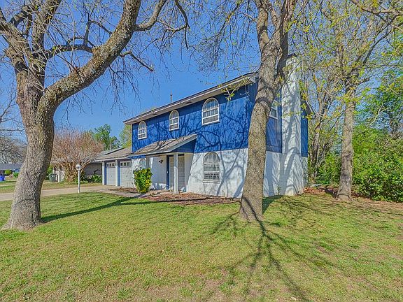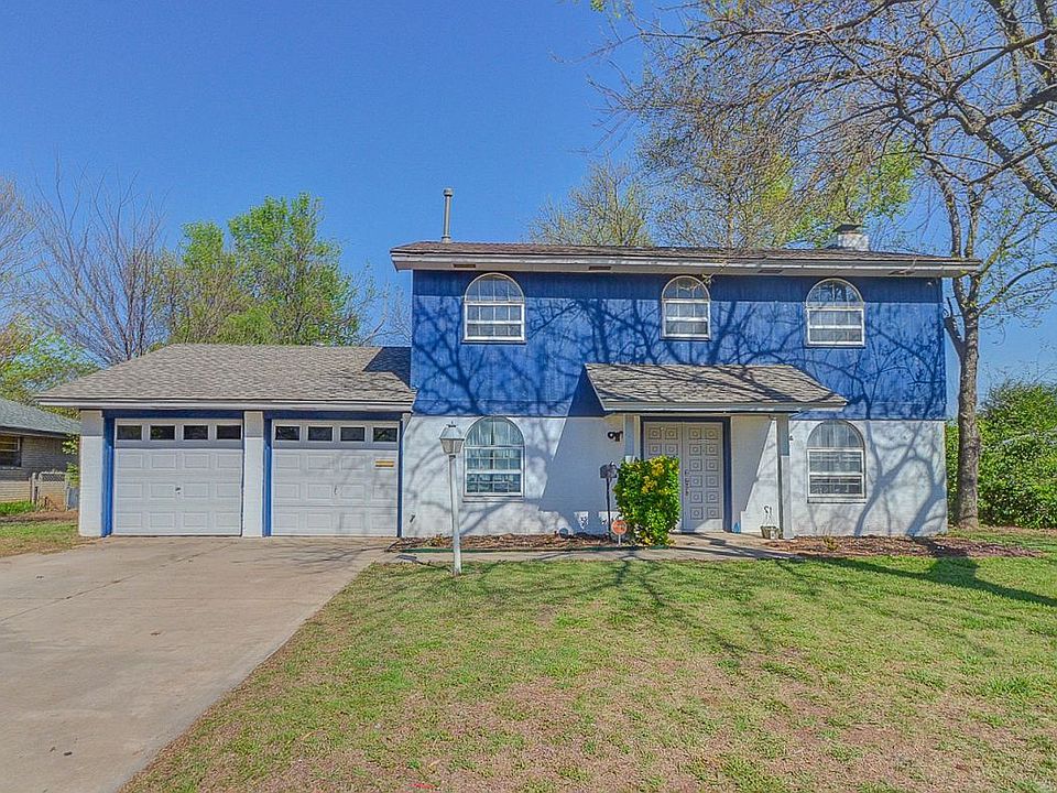 Remarkable home in a cul-de-sac in the popular Oakhurst addition. Very close to campus! This 4 bedroom home is very versatile with an extra bonus room downstairs that could be used for office, dining, or extra living room. Wood bookshelves with gas fireplace in the large living room and a wood deck off of the living room. Kitchen has new dishwasher and the refrigerator stays. Inside utility and half bathroom is downstairs. New storm shelter in garage seats 14 people! New exterior paint and newer roof (2015). All bedrooms are upstairs with 2 full baths. Woodsy lot with mature trees makes this property feel very secluded while in the middle of town.