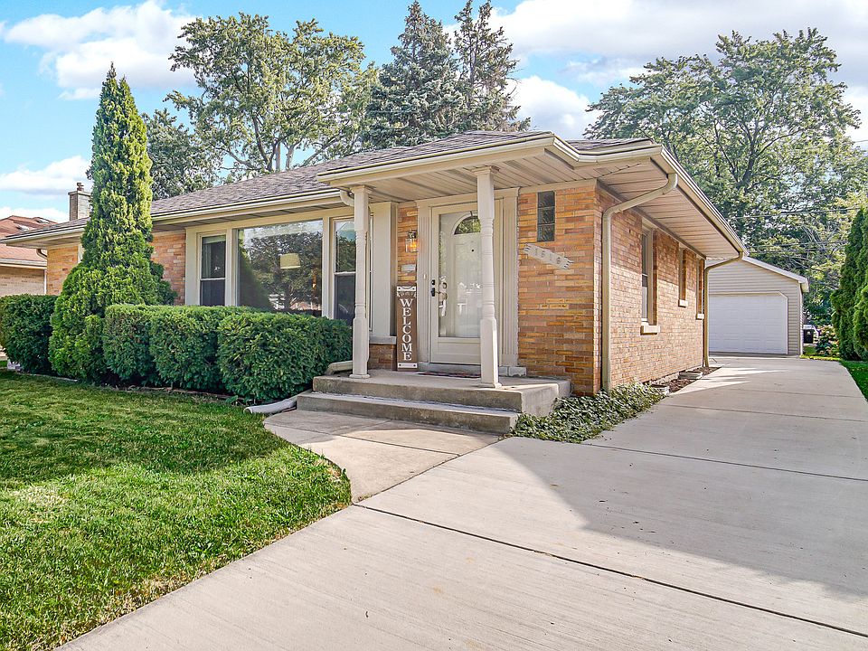 Welcome to this well-maintained brick ranch, perfectly positioned in a quiet neighborhood. This home features three bedrooms and one bathroom, complemented by an open dining and living room area that's perfect for gatherings. The galley kitchen, complete with a cozy eating area and large pantry, is ideal for both everyday meals and special occasions. The partially finished basement extends your living space, offering endless possibilities for use. For those with a passion for projects or storage needs, the true 2.5-car garage provides generous space and functionality. Enjoy the hardwood floors throughout the main level, with additional hardwood preserved beneath the bedroom carpeting. This home boasts an enviable location with convenient access to local amenities, including grocery stores, dining, shopping, expressways, fitness centers, parks, educational institutions, and trails. Enjoy a leisurely walk to the community pool and park district. Notable updates include a roof replacement in 2023 and a new concrete driveway in 2021, with the added assurance of overhead sewers.
