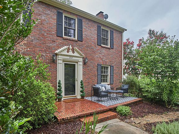 Featured on the National Register of Historic Places in Watts Hospital Hillandale, the Dr. Thomas Jones House absolutely radiates warmth and character. This sunny, bright brick Colonial has 4 bedrooms (one on main level + 3 up), each with at least one walk-in closet! Graced with beautiful oak hardwoods throughout and loads of charm. Easy floor plan features a spacious and comfortable living room with gas log fireplace, separate dining room, and darling kitchen with butcher block counters, soft close drawers, plus a brand new 5-burner gas range. Inordinate amount of storage (8 closets and a basement!) for a home of this era and design. Step outside to the relaxing front porch tucked amid the beautiful garden! Excellent location, lovingly cared for and ready for its next stewards.