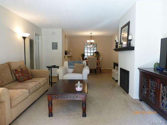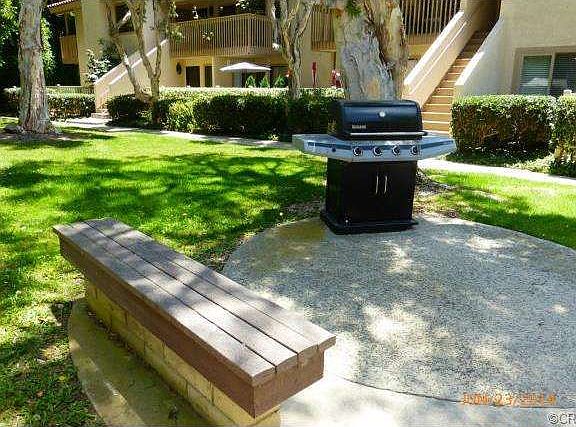 Wow, what a beautiful place to call home. This lower unit has a fabulous location facing a green belt with out door BBQ and benches. Unit shows light and bright. Close to assoc tennis courts. This immaculate condo with 1bedroom and 1 bath features and open floor plan with central focal fireplace with custom mantle and a fabulous wrap around patio. The kitchen has recessed lights. Master bedroom has walk-in closet. The detached enclosed garage has lots of extra space for storage. This association is beautifully maintained and encompasses lots of green belts and community gas barbeque for each building. Less than 2 miles to the pier. Near restaurants and shopping and easy access to freeway. (Note: Each building of 8 units each, shares a coin-op laundry room. Some individual units in the complex have stacked washer/dryers; however, this unit does not. Requests to install stackable washer/dryer unit are handled and approved through the HOA.)