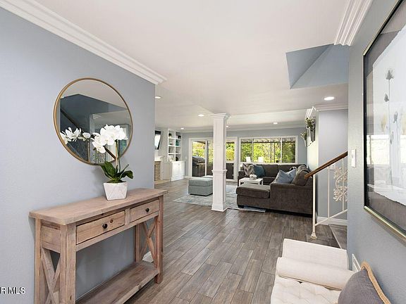 Welcome to this magnificent 4 bedroom plus office (1 bed & bath downstairs) pool home in one of the most desired areas of Porter Ranch. The open floor plan has been tastefully designed. The remodeled kitchen has newer stainless appliances, custom wood cabinetry, quartz countertops, & tasteful backsplashes. The kitchen is open to the cozy family room & dining area-ideal for friends & family gatherings. There is tons of natural light that flows in from the newer dual pane windows. Also note the custom molding & casings, designer flooring, abundant use of recessed lighting, beautiful built-ins, custom fireplace and views out to the expansive pool, sitting areas, covered patio, & VIEWS. The views of the mountains & sunsets are quite impressive There are two good sized secondary rooms downstairs. One room is being used as an office & does not have a closet. The other bedroom, with a nearby full bath has also been remodeled. Upstairs you will find a beautiful en-suite master bedroom. Plenty of closet space awaits, plus a dressing area & remodeled bathroom. There are also 2 additional really nice sized bedrooms upstairs & a 3rd fully remodeled bath. Direct access 2 car garage. Award winning schools, shopping centers, & hiking are close by plus so much more.