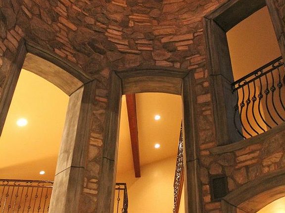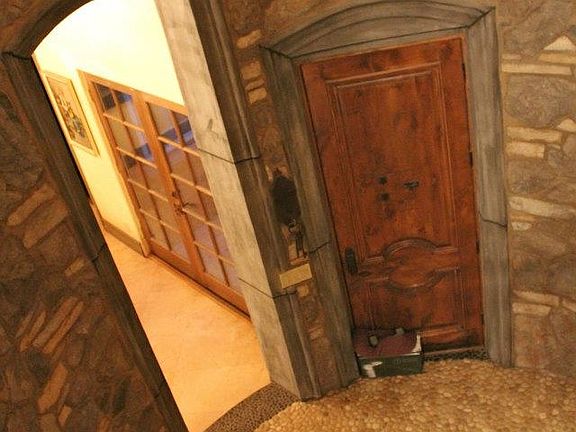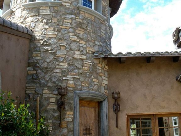 Castle style home. Incredible rock and masonry work. Craftsman style. Stone and concrete floors. Unique rod iron railings, artistic details throughout this large, unique home. Mason artistry stone turret features stone inside and out and custom, artist, mosaic, stone floor. This home is large airy and majestic. Has 3 distinct sleeping areas, brought together by central, spacious resort style living space. Views of mountains are gorgeous from every window. Waterscape pond with waterfall. Large lot, with room for storage. This property is in the acclaimed Valley Center School district.