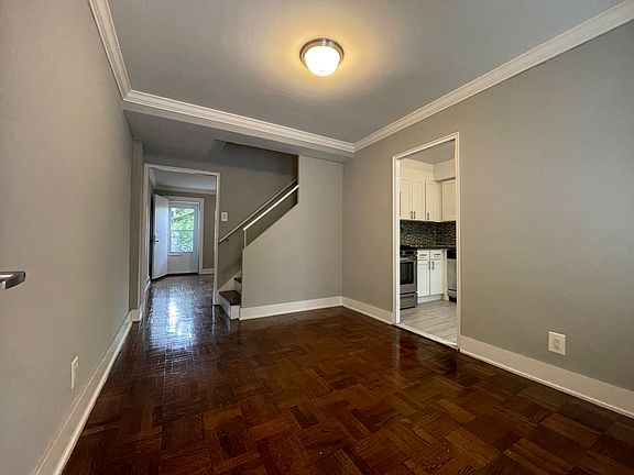 Nice size living room with large windows and tons of natural light. Hardwood polished floors and freshly painted. Kitchen with Stainless Steel Appliances.