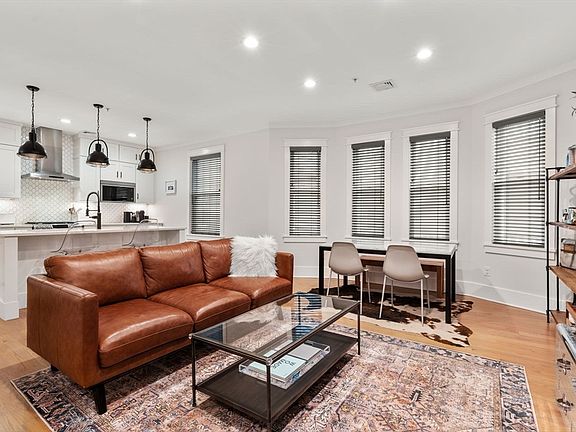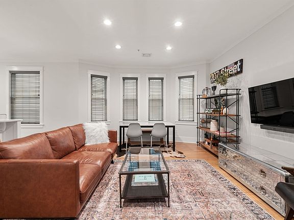This stylish & expansive condo features a spacious great room, 3 bedrooms, 2 full baths, and designer finishes throughout. The open living/dining area is perfect for entertaining with high ceilings and a distinctive 4-window bay. The chef’s kitchen shines with glass tile backsplash, a large island, stainless appliances, and quartz countertops. The bright king-sized primary suite includes a walk-in closet and luxe en-suite bath. Two additional bedrooms, one with access to a cozy private deck, and a second full bath with tub complete this residence. Enjoy hardwood floors, custom closets & window treatments, Nest controlled HVAC, in-unit laundry, mudroom, additional storage, and off-street parking. Just one block to the Stonybrook T and all the Brewery District’s best spots!