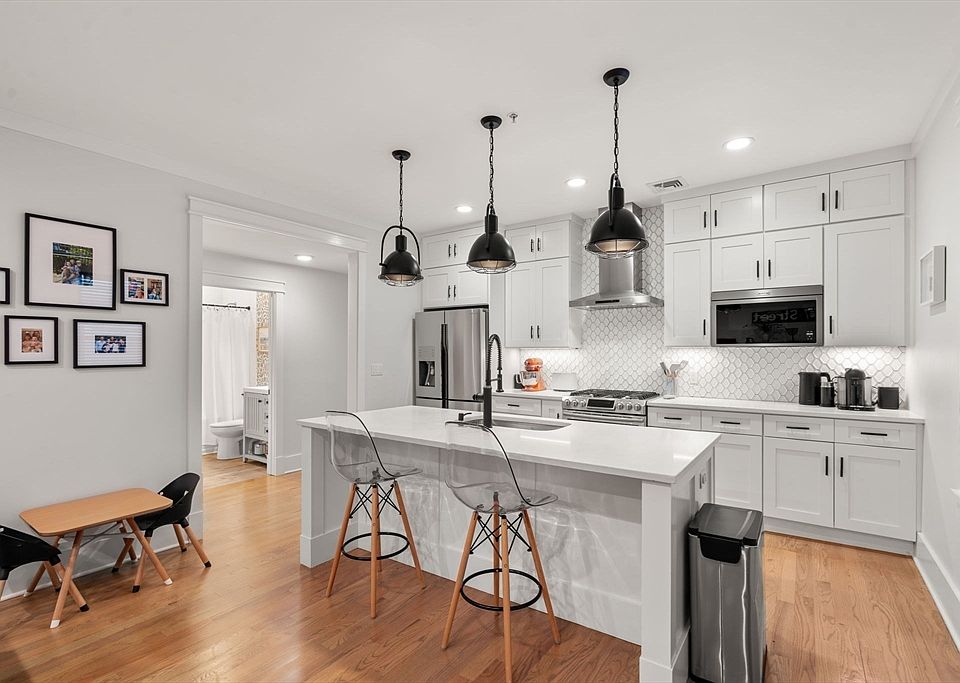 - Features: Flooring - Wood, Countertops - Stone/Granite/Solid, Kitchen Island, Open Floorplan, Recessed Lighting, Stainless Steel Appliances, Gas Stove, Lighting - Pendant