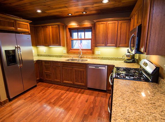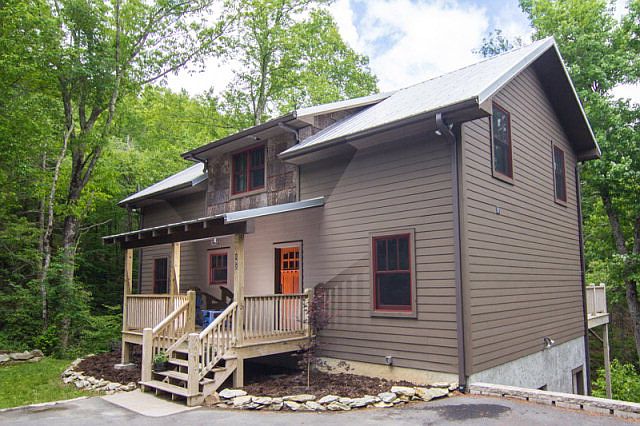 LITTLE LAUREL ELEGANT RUSTIC Waterfalls, Stream, Wooded Privacy, Mission-Style Architecture, Exotically Landscaped, Hardi-Plank siding, metal roof, poplar bark-siding blend beautifully with the stained, solid, six-panel wood door, metal hardware, rustic trim, blend of T&G and sheetrock, modern paint scheme. Granite counters, stainless appliances, mission windows. Location off Little Laurel just past Parkway convenient and cool. The hardwood floors reflect the glow of terracotta lamps in overhead fixtures and pendants augmented by recessed lighting in the ceiling. Kitchen, great room and dining space open to windows and patio doors punctuated by dramatic clerestory windows admitting to the covered back porch. Above the high-end ceiling fan distributes the mountain breeze. Youll love little touches like the mission-style lavatories. Practically speaking youll love the on-demand hot water, built-in radon system. The yard is a godsend for entertaining or simply relaxing by the falls. The stone walls add such a touch of refinement in the woods.