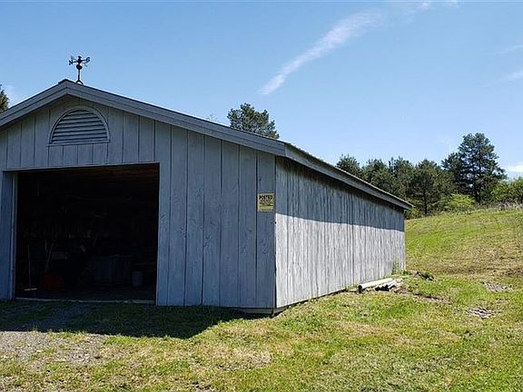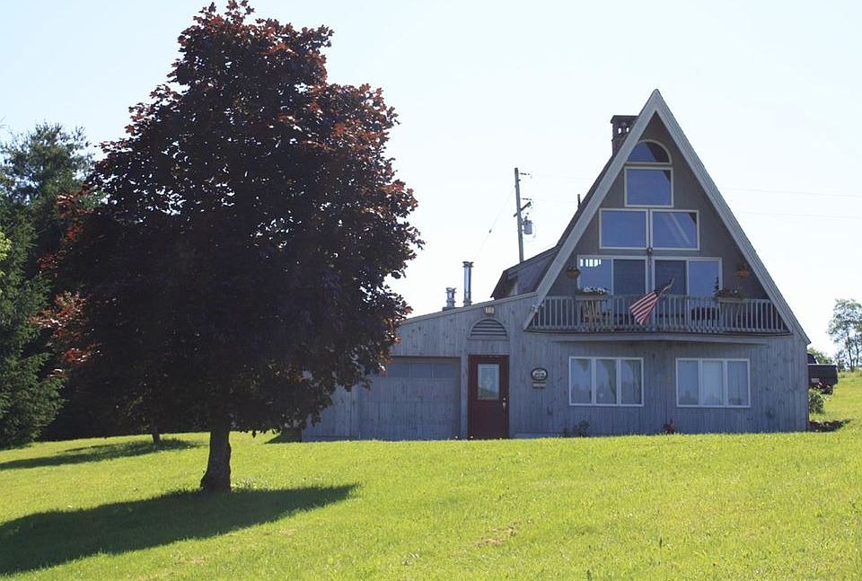 This custom built A-Frame style home is situated on 47 beautiful acres! Featuring tillable fields, a stream fed pond with gazebo, a mature tree lined driveway (yellow maples) and a mature Hemlock forest for your hunting or recreational pleasure! This property has a maintained trail system that is approximately 3.5 miles long, this is including a perimeter trail around the entire premises, as well as you're own shooting range to keep those skills tight for the upcoming hunting season. In close proximity to TWO state forests, one containing over 700 acres and the other over 5000 acres for even more hunting options as well as snowmobile access. Take a short walk to the highest point on the property and you have a beautiful long distance view! There is also a 25ftW x 45ftL pole barn with drive through access in excellent condition! Just a few steps to the left of the pole barn sits a small heated bungalow/storage shed with a charming stone grilling area with views of your pond and swift moving stream! Going into this finely built home, you will notice the high end carpentry and amazing attention to detail. Although unusual for an A Frame style home, this one features a heated ground level entrance way, with a large forced heating living area that also has a charming gas fireplace! Also on this level there are multiple storage areas as well as a full bathroom with laundry, and a large double deep heated garage with led lighting and multiple 220v. and conventional Outlets. Moving up stairs you'll find a beautiful kitchen with custom built cabinetry and 2 year old stainless steel appliances witch stay with the home. There is a full bath located on this level as well as a bedroom across the hall and a heated sun-room with sky lights and access to the porch and backyard. There's no missing the homes solid stone basement to loft fireplace either! This floors living area features oak flooring and sliding doors to a deck overlooking the beautiful tree lined driveway. The loft area of this home features stunning views of your property and has a half bath for convenience. If you're looking for a property to farm this could be you're spot. If hunting is what you're really into this property is in a prime location for that as well. If a little rest and relaxation is on the list this is a hard spot to beat! Paved town maintained road. Motivated Sellers!