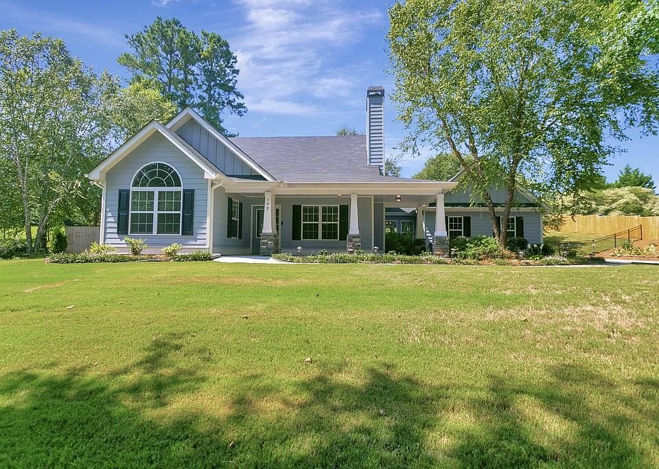 Relax on your own Covered Front Porch of this Beautiful Well Maintained, Freshly Painted Ranch with New Appliances and a 4 year old roof. 3 Bedroom 2 Bath Ranch, Hardwood Floors in Great room, Kitchen and Dining Room, Stained Cabinets. Stack stone Wood Burning Fireplace, Cathedral Ceilings, 2 Car Garage, Beautiful Landscaping with Pond and Fire Pit, lots of Shrubs and Great backyard with patio for entertaining or family. Great Neighborhood with Sidewalks, Swimming Pool, Playground and Park! Convenient to I-85.