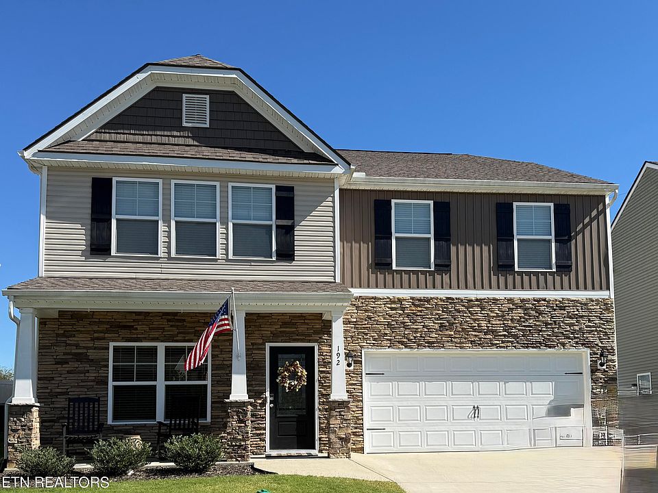 Professional photos coming! Welcome to 192 Centennial Village Drive—a beautifully maintained 2-story Craftsman home with stacked stone and vinyl siding, located in the desirable Centennial Village Harbour Cove neighborhood of Oak Ridge. Built in 2022, this 4-bedroom, 2.5-bath home with a main-level office, formal dining room, and nearly 2,700 square feet of thoughtfully designed space is packed with high-end upgrades and move-in ready charm.