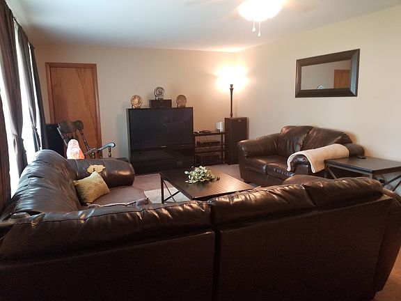 Spacious sprawling Ranch 3 bedroom 2 bath plus down stairs shower. Eat in kitchen - remodeled, new sink, counter tops, & appliances. Huge master bedroom, Hard wood floors through out 47x13 Rec room Partially carpet plus pool table Nice size laundry room with storage. Closets galore plus storage. Covered patio with fire pit plus new storage shed. New roof, gutters & vents Heated 2 1/2 car attached garage New water softner, sump pump & well pump. Located on an over sized lot.