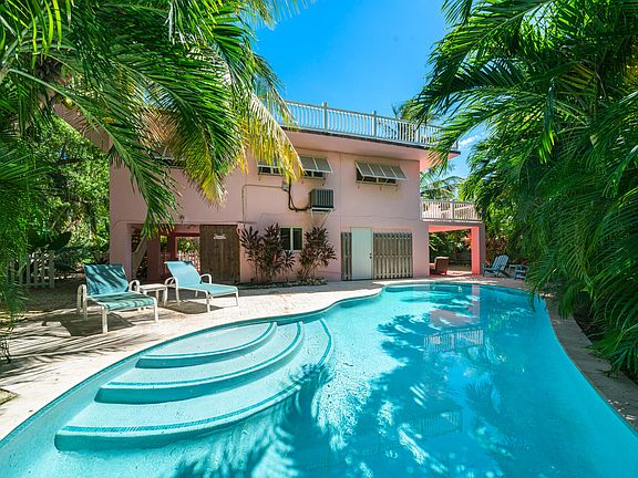 Discover your dream getaway in this charming island retreat, perfectly situated on one of Islamorada's most coveted streets. Surrounded by tropical lush vegetation, this all-concrete property offers the ideal blend of privacy and access to paradise, just steps away from Founders Park, featuring a beach, tennis and pickleball courts, and an Olympic-sized pool.This two-bedroom, one-bathroom home boasts multiple outdoor decks, including a spacious rooftop deck with breathtaking ocean views and refreshing breezes. Relax in the gorgeous pool or enjoy the abundant shaded yard space, perfect for family gatherings or tranquil afternoons among the vibrant flora.For added convenience, a separate one-bedroom, one-bathroom bonus studio downstairs provides extra space for guests, along with a garage for your vehicles and storage needs. Launch your boat from the ramp just 200 feet from your doorstep, making it easy to explore the beautiful waters of the Florida Keys.
