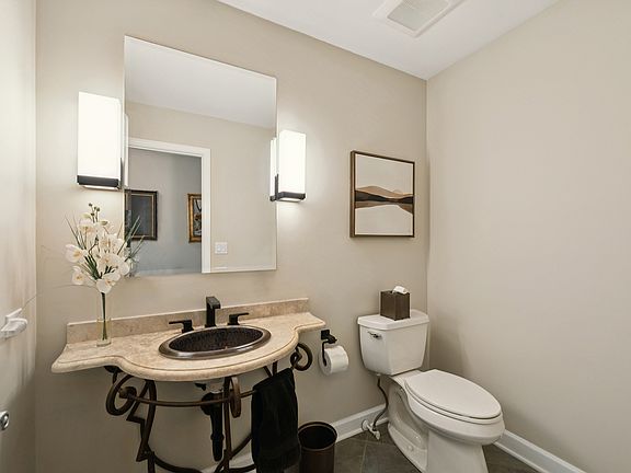 Your next home is this one in Inverness on the Ponds, a highly-desirable, gated community. Lovely 2400 sq. ft. ranch home with a full, finished basement. Kitchen features a fireplace, high- end appliances, granite counter tops, subway tile back splash, beautiful mahogany flooring, undercabinet lighting, white cabinetry with pullout drawers, plenty of pantry space and access to the side deck. An Italian marble mantel on the great room fireplace is stunning, making it the focal point of the room. The open floor plan great room and dining room feature a bay window, dramatic tray ceilings, and access to the large, back deck with mature tree views. In addition to a large, updated first-floor laundry room/mudroom with plenty of storage, conveniently located off the garage, this well-designed home features a main-floor powder room and two spacious main-floor bedrooms. Each bedroom has its own full bathroom. The master bathroom includes a walk-in closet and heated floor. The full English basement includes a large recreation room complete with wet bar and refrigerator, large L-shaped bar with seating for seven plus, powder room, third bedroom with full bathroom, workout room, workshop and large storage areas. Other home features include hot water circulator pump; battery backup sump pump system; new hot water heater, furnace and A/C; heated garage, larger garage; gutter guards and upgraded landscaping. Don't miss this one!