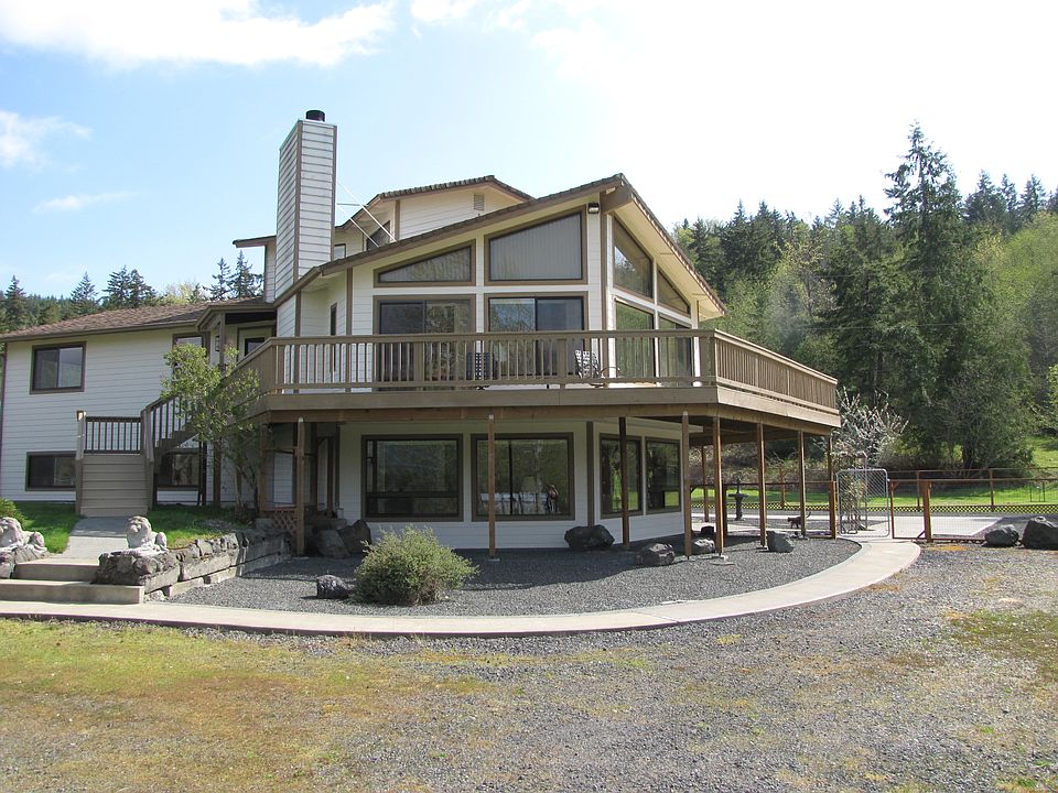 What a find. Enjoy panoramic Olympic Mtn, Quilcene Bay & Quilcene Valley views from this incredibly appointed home. 3 levels of beautiful views from this 3600 sq' home. The home features large open living and dining area, additional recreational area below and 3rd floor escape. Level lawn area with fruit trees and room for sunny garden area and animals. As a bonus, there are many out buildings and covered parking for all your toys. A huge garage awaits your ideas. Close to the bay for your fun.
