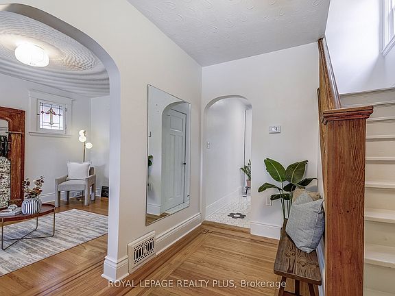 Beautifully restored 1921 home nestled in the heart of the coveted Delta West neighbourhood, steps from Gage Park, Niagara Escarpment, and vibrant shops & eateries of Ottawa Street North. This 2.5-storey home is a rare blend of heritage charm and thoughtful, high-quality updates. Lovingly renovated by the current owners in 2021, this 4BR, 3 Bath home showcases original features such as refinished wood floors, antique interior doors, stained-glass windows; glass pocket doors; the original fireplace (now capped & insulated) & more!. At the same time, it offers the comfort and efficiency of modern upgrades: triple-pane windows; updated electrical panel; new roof; fully updated plumbing, pot lights; completely rebuilt front porch; spray foam insulation.The fully reno'd kitchen combines vintage flair with smart design, including marble counters; large modern windows; panelled, European-style appliances; ceramic hexagon floor tiles. 3 ample-size BRs on 2nd Flr, featuring wood flrs & a bright bath that boasts an oversized glass shower/seat; and double vanity. The stunning 3rd floor primary retreat, renovated in 2023, is a true show stopper featuring, comfort, privacy, and beauty. Bathed in natural light from the enlarged canopy windows and newer skylight (2021), this airy space is well insulated and offers a wall-mounted AC/heat unit. The spa-like ensuite boasts a 6' freestanding tub, modern eco toilet, and even an electrical outlet ready for a bidet. The basement provides for in-law suite potential with a separate side entrance and rebuilt staircase, enlarged modernized 3pc bathroom, new windows, pot lights; spray foam insulation; and electric baseboard heaters. The main room, awaiting your choice of flooring, is equipped with electrical & plumbing rough ins, making it easy to convert into a self-contained living space. Incl: Washer & Dryer; Oven; Stove Top; Refrigerator; Range Hood; Dishwasher. Lower level appliances incl: Fridge; Stove; All-in-One Euro Washer/ Dryer.