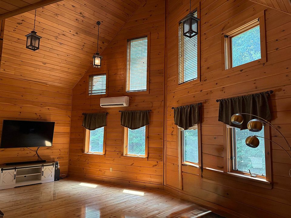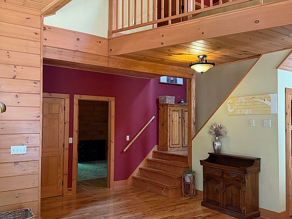 WELCOME TO YOUR NEW OASIS AT 192 LENNY ROAD! This beautiful 2102 ft.² Log home has 5 bedrooms 2.5 bathrooms, lots of natural light, a spacious deck, a covered balcony, a stamped concrete section of driveway in front of the attached two car garage all situated on 12.3 acres with trails and the property borders the Stone Valley Trail. This home is located close to Potsdam, Parishville, Colton, and Canton. As you Walk up onto the front, spacious deck And enter the home, you will see the beautiful open concept living room with a cathedral ceiling and windows from the floor to the ceiling. They’re beautiful wooden floors throughout the home. In the living room, you will also see a wood stove with a triple wall chimney that has been reinforced in the basement for added strength so you can finish that off with whatever you you’d like all the way to the ceiling. Then you’ll enter the gorgeous kitchen with plenty of cabinets and counter space, a large island with five stools and stainless steel appliances that convey with the home. That room flows into the dining room with a good space for gatherings. That the dining room you will find the foyer area and front door with a large closet and the door that leads to the attached garage. You also see the Pantry area that could also be a main floor, laundry room. Then you will see the beautiful half bathroom. Off the living room you will find the primary bedroom with a large walk-in closet and a primary bathroom with double vanity, a shower and separate bathtub. Also, after living room, you will find the door that leads to the covered balcony that overlooks the lovely property. Upstairs, you will see the spacious loft area With room for a second living room or an office space. Upstairs, you will also see the two bedrooms and another full bathroom. In the basement, you will find another area that is finished for a living room or A playroom with glass doors that Bring you to the yard. You will also find two bedrooms and a finished office space. Also, in the basement, you will see the boiler room, the laundry area with storage and another room that is ready for you to add a bathroom! This home has so much to offer, schedule your showing today!
