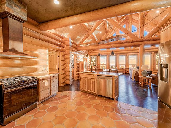 Nestled in a grove of ponderosa pine and embraced by the fresh mountain air of the Sangre de Cristo Mountain range, this property offers more than a view… It offers a way of life. Following the natural movement of the hillsides, the private road leads you on a welcoming path to a unique home, resting perfectly in-tune with its environment. Unbothered by population density, this home is located on the southern end of the Rocky Mountains, just 30 miles south of historic Taos, New Mexico. At 8,500 ft, this 285+- acre landscape lends airspace to a stunning view of the 13,000 feet Jicarita Peak (a mountain held sacred by the local Picuris Pueblo people) and neighbors the Carson National Forest and Pecos Wilderness. It stands ideally situated amongst a bountiful, restored ponderosa pine forest (an officially Registered American Tree Farm) and produces a synergistic ecosystem and wildlife habitat for local flowers, grasses, shrubs, elk, turkey, hawk and deer! Venture farther and you will discover a canyon with flourishing Aspen and Fir trees and two natural earth-fed springs. Numerous ponds (9) created specifically to provide water to wildlife and for erosion control sit on the property. This spacious ranch provides twenty +- acres of flood irrigated pasture from two well-maintained acequias and 14+- acres of dry pasture. They yield an abundance of hay for horses or space for other crops. Clearing and maintaining the registered American Tree Farm have been a source of income in the past and can continue to do so. The ranch is registered with New Mexico Fish and Game for landowner elk tags in Unit 45 and is located within 60 to 70 miles of five ski resorts, namely Sipapu (14 miles), Taos Ski Valley, Angel Fire, Red River and Ski Santa Fe, supplying an outstanding selection of diverse activities for people of all ages and abilities. This log cabin lodge is brand new! Having been recently completed, it boasts a 27-foot cathedral ceiling, three bedrooms, two bathrooms, hot tub, wood burning stove, and a four-car garage/workshop with a 350 square foot bonus room upstairs, within its approximate 4,000+- square feet, with an additional 1,200 square feet of flawless decks - perfect for small intimate dinners or larger sophisticated gatherings. The 12-inch logs and floor plans that foundationally support this home were purchased from Montana Custom Log Homes Inc, the acclaimed creators and designers of custom-built, versatile, and handcrafted homes for generations. The distinctive prow of this floor plan allows for a view of hundreds of square miles of northern New Mexico valleys and mountains out of the 25 west facing windows. Sunsets are glorious! With a roof, specially treated to give an ancient or aged feel, this expansive home packs in the details! Including a rich hand carved door into the pantry, a copper lined kitchen sink and copper hood over range, live edge countertops, specialty tiled bathrooms, distinctive glass and onyx basins on bathroom vanities and specialty wood ceilings. Hand crafted southwestern style furnishings (may be negotiated with sale of property). Underground utilities, highspeed fiberoptic internet cable, gravel driveway, cisterns for water catchment, seeded lawns, 25 x 25 carport and so much more. Property excellent for that unique family get a way, secondary or primary home compound, or corporate retreat, the use is endless. A truly special and unique property awaits you! Don’t miss out! Schedule your viewing today.