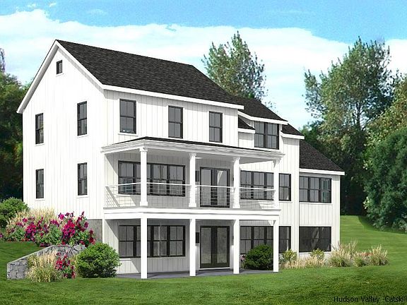 Architect designed Modern Farmhouse & Custom Quality High Efficiency Construction. (Seakill Custom Home Builders & Frank Wellington Dunn Architect) 2400 Sq/Ft of finished space with a walkout/windowed Lower Level ready to finish (1100 sq/ft) Cathedral gourmet kitchen (Viking Appliances, 36" Viking Gas Range) open to a large great room for open plan entertaining. With a separate large fireplaced living room, that opens to a double decker rear covered porch with amazing views of the Catskill Mountains. Upstairs are two guest bedrooms and a Master Suite with a large master bath with free standing soaking tub, 2 sinks, private toilet room and built in shower. Lower level French doors lead to a covered porch and a beautiful rear yard looking at original stone walls and the Catskill Mountains. High energy efficient home that will be very affordably heated and cooled. *Interior photographs are an example of finishes and colors, but not the actual. UNDER CONSTRUCTION, Ready for Early 2021 Occupancy. *Lot is pending final subdivision approval.