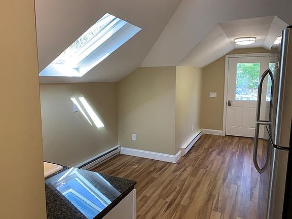 River view from your living room. Ideal for single person open floor plan apartment with newly refinished hardwood floors and newly renovated kitchen including dishwasher. 3 skylights flood the apartment with sunlight. This apartment is in a 3 apartment complex, each with their own entrance with all other tenants being working professionals. The bath is a shower stall with new flooring and vanity. The bedroom features 2 window and a large walk in closet. Heat is electric but hot water is gas. Very reasonable expenses. Limited unsecured storage in basement and some storage for seasonal items in attic crawlspace accessible only to tenant. Small deck off entrance which could accommodate bistro style table and chairs Landlord maintains lawn, recycling, garbage and snow removal. 1 Year Lease Please note prior to applying this is a no pet no smoking apartment Please tell us a little about yourself , job, and why you are looking to move credit and bci will be checked we are looking for a long term stable tenant We will be making a decision on Sunday May 24th from qualified applicants.