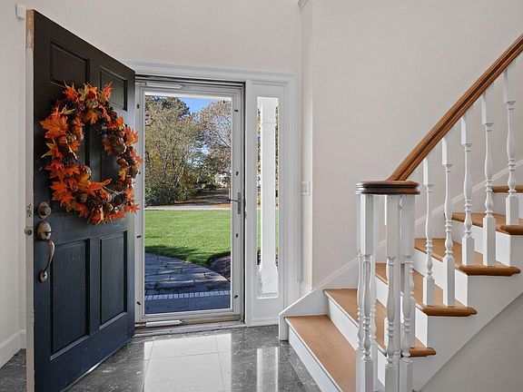 Exquisite private waterfront oasis. Hamblin Pond features over 300 acres of connecting freshwater between Hamblin Pond, Middle Pond and Mystic Lake. Enjoy magnificent sunsets over your private level yard. Prepare to be enchanted by this 4+-bedroom, 3.5 bath home boasting high ceilings, incredible views & private water frontage. The first floor awaits your personal decorating. Primary bedroom features new flooring, sitting room with fireplace, stunning water views plus large bath and walk-in closet. First floor flexible floor plan offers sunroom, family room with fireplace & kitchen overlooking the water. Formal living, featuring third wood burning fireplace & dining room are freshly painted with new flooring & a grand foyer with elegant bridal staircase.Renovated second floor showcases another primary en- suite & 2 bedrooms with shared bath plus space currently used as an exercise area. Second staircase to large bonus room with new cabinet, stone countertop, & dishwasher..Mature plantings in level yard provide a haven for outdoor enthusiasts, bocce court, space for canoes, kayaks, paddle boards, gardens. For the car enthusiast, three-car side entrance garage.