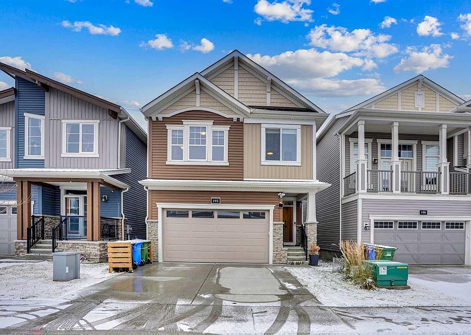 Discover Your Dream Home in Carrington! A stunning 2-storey home offering over 2490 sqft. (1830 sqft. above grade) of thoughtfully designed living space in the highly desirable community of Carrington. This modern home features an open-concept main floor with 9-foot ceilings, with a bright living room, spacious dining area, and a stylish kitchen completed with stainless steel appliances, gas stove, and quartz countertops. Large windows fill the home with sunlight. Elegant LVP flooring throughout the main level offers both durability and sophistication. Upstairs you’ll find four generously sized bedrooms including a primary bedroom with a 4-piece ensuite and walk-in closet. The upper floor balcony is converted into a sunroom. Convenient laundry on the upper floor makes chores easy. The professionally finished basement offers a gaming room, a bedroom/office, an additional full bathroom, and loads of storage. The landscaped backyard is your outdoor oasis, completed with a deck and fencing. The double attached garage can fit two large vehicles. This is a non-smoking and no pet home and has always been meticulously maintained and it shows as soon as you walk in. Easy access to Stoney Trail, and Beddington Trail. Close to schools, lots of amenities including grocery stores, financial institutions, restaurants and shopping centers. Book your showing today!