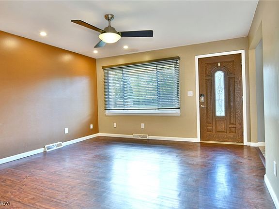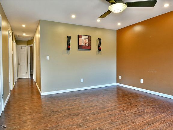 Find the perfect mix of efficiency and style while you explore the move-in-ready living space of this attractive Austintown home! Checking all the right boxes, this residence has everything you need, such as a desirable three-bedroom ranch layout, modern design elements and great use of materials, a relaxing rear patio and a large storage shed. The quiet neighborhood finds you in a peaceful setting as the handsome gray and white exterior treatments make for an instant standout. A decorative front door leads you inside to find a spacious great room layout where recessed lighting joins a large picture window to warm the cherry-colored flooring below. White trim snakes the baseboards and doorways, leading into the nearby kitchen. Here, tiled flooring joins the unique epoxy styled countertops that present a stone textured shoulder. The dark backsplash compliments it perfectly while contrasting the array of cabinets. Down the main hall, laundry and utility services are first found as they accompany closet space. Enjoy the inviting tiled bath and its naturally lit shower next, as it showcases a quaint vanity. The three bedrooms complete the package, each with impressively sized footprints. Call today for more!