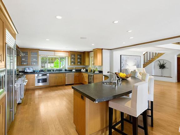 Private gated Mediterranean celebrity view estate on prestigious lower Tigertail road. This old California craftsman inspired Mediterranean home has been painstakingly remodeled over the years to be a stunning hybrid of Mediterranean with craftsman details. Drive through gates to private drive way. There are beautiful park like grounds and a swimmers pool with pastoral views of hills and city lights. The floor plan is very flexible with two en-suite bedrooms downstairs and three upstairs. The master consists of 3 rooms and two bathrooms, which could be an office, gym, nursery, or two rooms could be guest quarters entered from outside staircase. There are 5 exquisite fireplaces in the house. The open floor plan exudes casual California living.