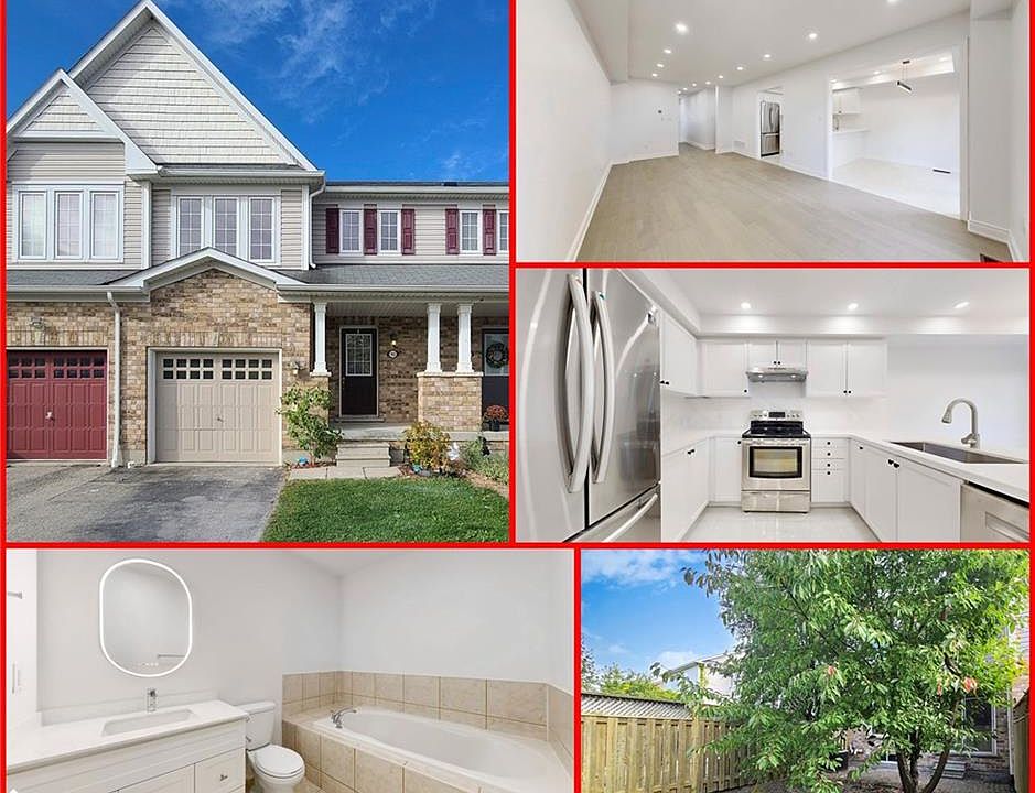 Welcome to this spacious and bright home located in a friendly, family-oriented neighbourhood. This beautifully renovated townhouse features an extra-long driveway, offering ample parking space and great curb appeal.Step inside to a modern kitchen with stainless steel appliances, porcelain tiles in the kitchen, breakfast area, and foyer. The living room boasts brand-new hardwood flooring, while the bedrooms feature quality laminate flooring for easy maintenance. Convenient second-floor laundry and garage access from inside the home add everyday practicality.Enjoy the benefits of a water softener system, a fully fenced backyard, and many other upgrades throughout.Perfect for first-time home buyers or investors, this property is move-in ready and offers excellent value in a sought-after location! Hot water Tank is rented. Included: Fridge, Stove, Dishwasher, Washer, Dryer, Water softener, garage door opener (no remote), central vacuum "as is" (never used)