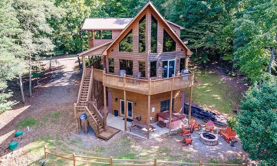 $10,000 BUYER INCENTIVE to be paid at closing! - MAJOR PRICE REDUCTION! Enjoy long range, panoramic mountain views in this large , fully furnished cabin! Easy access on paved roads! Beautiful cathedral ceilings with open floor plant! Come see this beautiful cabin on 1.46 acres with three finished levels! Each level features a private bedroom & full bathroom. Can sleep 8 comfortably! Enjoy the fire pit or take a plunge in the hot tub! This home is offered completely furnished. Just bring your toothbrush! This home is waiting for you to come & RELAX! Move in ready & successful short term rental!