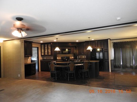 A must see!!! Great layout-w/loads of kitchen cabinets--you'll never want for extra cabinet/storage space. Wonderful 3 BR, 2 BA, split floor plan, 32x56, on approx. 2.01 ac, open floor plan, huge kitchen area w/eat-at bar & separate dining room. Great for family get togethers or entertainment. Master suite has walk-in closet & master bath, which includes double vanity, garden tub w/rock facing, remains, appliances remaining: refrig, range, microwave, DW. fabulous!