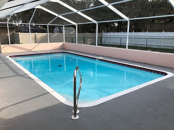 Spectacular pool home in a great location! This home has it all! Big sparkling screened-in pool, fenced in dog park or children's play area, additional large screened-in lanai, eat-in kitchen with more than enough cabinets and drawers and a bay window overlooking the pool with sliding doors also leading out to the lanai, 2 doggy doors for your convenience, and formal living room and dining room, front room or sitting room could be a second living room, coat closet by the front door, all bedrooms are extra large, master has spacious walk-in closet, ensuite bathroom with dual sinks and brand new one-piece comfort height Kohler toilet, linen closet, sliding doors leading out to lanai, second bedroom has large closet and sliding door leading out to pool area, both bathrooms complete with handicap grab bars, third bedroom with big closet, ceiling fans in all the rooms you would want them. Interior laundry room with cabinets and sink. Sprinkler system to keep yard nice and green! Water Heater 2019, A/C 2018, roof 2019, gutters 2019, porch and pool deck re-done 2019, new carpets, landscaping, mailbox, storm windows, and paint all in 2019! Septic cleaned 2018.