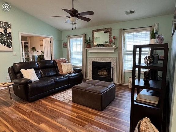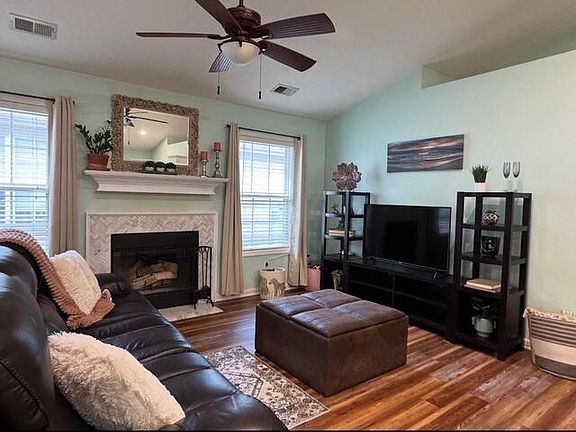 Tiled fireplaceUpdated laminate flooringCeiling fanFreshly poured drivewayFrench drainPalladian windowComposite deck