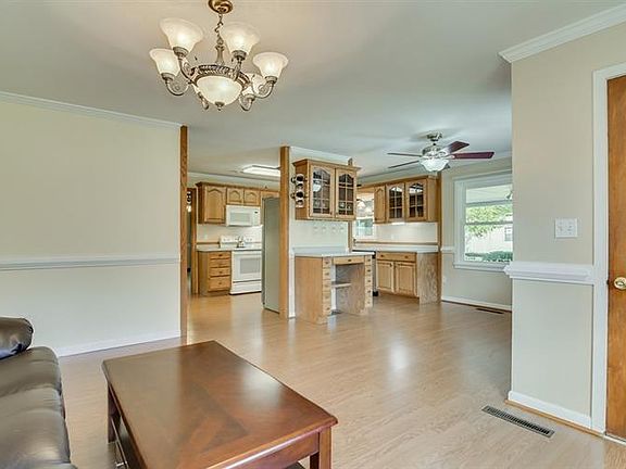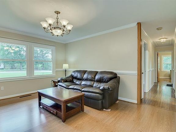 Eligible for USDA financing for qualified buyers. All brick 4 Bedroom, 2.5 Bath ranch home on over 1.5 acres. Enjoy quiet evenings in the hot tub on the 16x30 screened porch. Kitchen has been remodeled to include solid oak cabinets, under cabinet lighting, stainless steel appliances including refrigerator and walk-in pantry. Laminate flooring throughout living room, dining room and kitchen. Original hardwoods in owner bedroom, hall and two additional bedrooms. Large family room with fireplace and built-ins. Cozy and bright sunroom. Fresh paint throughout. Updated Southern Siding windows are still under warranty. Updated bathroom and fixtures. Fenced back yard with 30 x 40 storage building. 165 foot well; pump only 7 years old. City water available at street. Seller offering 1 year 2-10 home warranty.