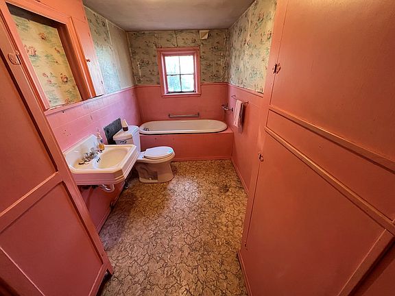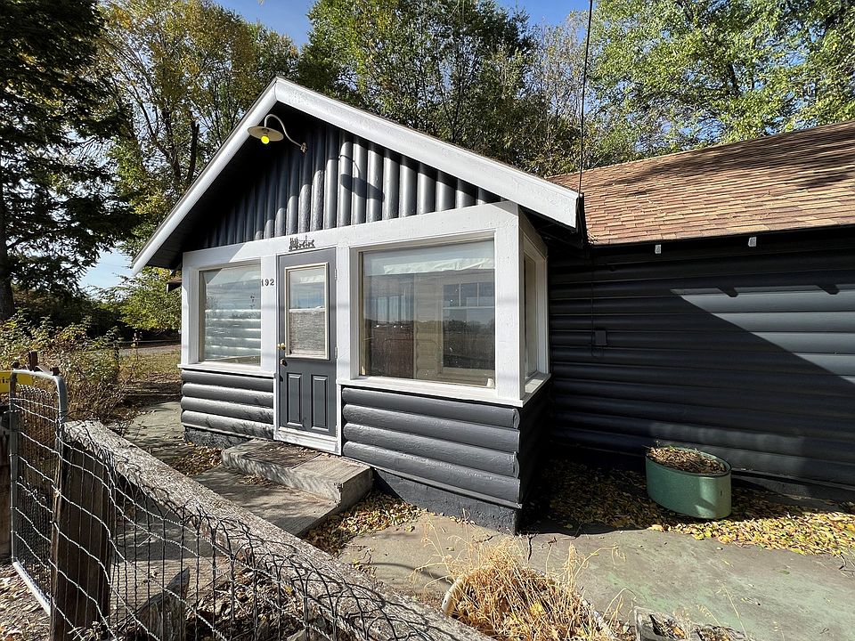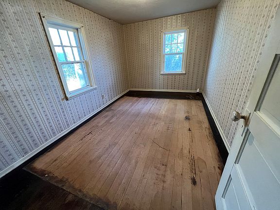 This 1940 home sits on a double city lot located on the edge of town affording good privacy and limited traffic. The home features 2 bedrooms, 1 bathroom, hardwood floors, wonderful wood-frame windows in the living room, and an older oil furnace. The kitchen has Formica counters and wood cupboards; there are no appliances. The second floor is unfinished and makes for good storage. Although the spaces are small, there are good closets and storage spaces throughout the house. The ceilings on the first floor of the home are low. The home has been newly repainted, and the roof is composite shingles in good condition. The yard is a nice-sized space, fenced with mature trees, and includes additional off-street parking areas.