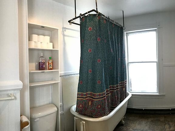 This three bedroom apartment includes both the second and third floors of the building and plenty of storage space. There is off street parking for two vehicles and the back yard includes a picnic table for tenants' use. The enclosed porch/mudroom has a built in bench, some shelving and hooks for hanging coats and the entire apartment is freshly painted. The laundry room has hookups for a tenant's washer and dryer and the kitchen includes an electric stove and refrigerator. Heating is with oil and all the windows are double paned. The apartment has been deleaded and the certificate is available upon request. IF INTERESTED, PLEASE PHONE, TEXT or EMAIL. Tenant pays for heating oil and electricity. First month's rent, last month's rent and security deposit are required before move-in. Non-smokers only. Off street parking for two vehicles. Pets are considered on case by case basis. The tenancy is month-to-month.