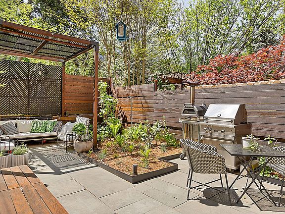 Step outside to your own private oasis – a beautifully landscaped, serene garden that’s perfect for relaxing and enjoying the beautiful spring season. A 500 gallon rainwater collection system has been thoughtfully installed to collect rainwater from the roof and repurpose for backyard irrigation. With outdoor Bose speakers, plenty of room for a grilling and pizza oven station, and expansive lounge furniture the tranquil garden is your personal escape in the heart of Brooklyn.