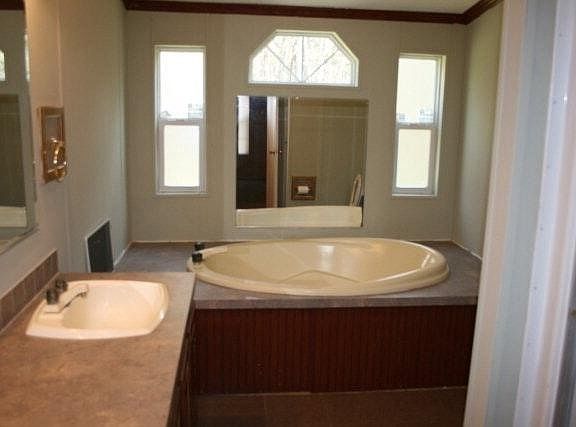 Large 3 bedroom, 2 bath double wide mobile home in very quiet neighborhood. Home is on a large lot and has a fenced yard, screened porch and rear deck. Interior has a spacious family room, a large eat in kitchen with adjoining family room. Master bedroom is very large with private bath that includes a separate shower and garden tub. Water on well.