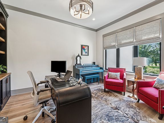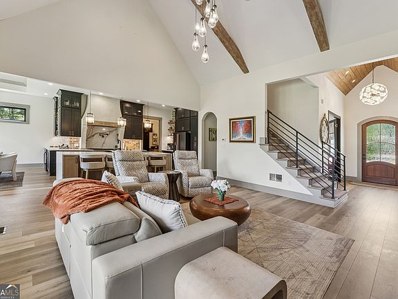 Stunning Modern European Custom 4BR/3.5BA Home-5 min. walk to Downtown Alpharetta! Welcome to your dream home-an exquisite, nearly new Modern European masterpiece offering 4 bedrooms and 3.5 bathrooms, nestled on a beautifully landscaped corner lot. Perfectly situated within walking distance to the vibrant shops, dining, and entertainment of downtown Alpharetta, this custom-built residence blends elegance, comfort, and everyday convenience. Step through the impressive, vaulted grand foyer with tongue and groove ceiling, setting the stage for the quality and craftsmanship found throughout. Off the foyer, a private office with gorgeous built-ins provides an ideal work-from-home sanctuary. The main level features a luxurious master suite with a spa-inspired bath, highlighted by a grand two-sided shower and an expansive walk-in closet, offering true main-floor living. Entertain with ease in the vaulted great room, adorned with striking custom beams and a cozy fireplace, seamlessly connected to a gourmet chef's kitchen featuring premium appliances, oversized island, custom cabinetry, and a hidden large walk-in pantry for all your storage needs. The elegant dining room is perfect for formal gatherings and includes a stylish bar area, making it ideal for entertaining and special occasions. Upstairs, you'll find three additional bedrooms-including a charming bunk room with its own ensuite bath, perfect for family or guests-plus a versatile loft area ideal for a playroom, media space, or second office. Two full bathrooms on this level provide convenience and privacy for all. Enjoy seamless indoor/outdoor living with a beautiful back porch, featuring a built-in grill with generous counter space, outdoor fireplace, and ample room for gatherings. The meticulously landscaped yard offers privacy, outstanding curb appeal, and plenty of room for recreation or gardening. Additional highlights include: - Prime corner lot location - Beautifully landscaped grounds - Spacious 3-car garage - Walkable to top-rated Alpharetta Elementary & Innovation Academy STEM High School - Designer lighting, hardwood floors, and custom finishes throughout - Vaulted ceilings, custom beams, and exquisite architectural details - Generous storage, including a hidden walk-in pantry Experience luxury living in the heart of Alpharetta-schedule your private showing today!