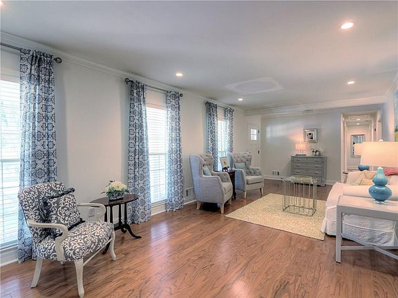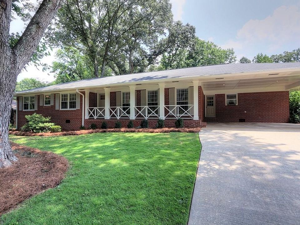 Major renovation for casual all brick ranch that makes this home like new. Light color paint/dark stain hdwds thruout. Craftsman cabinetry in new kitchen. Potential 2 mst suites. 4BR/3BA w/designer vanities/tiles/fixtures. New lighting, 3 spacious living areas - 4th BR is oversized and versatile as 2nd FR or rec rm. 3 season porch is ideal space for relaxing or entertaining while overlooking beautiful level backyard w/picturesque hardwood trees. Perfect setting for play or gardening. Easily walkable to charming downtown Historic Norcross.