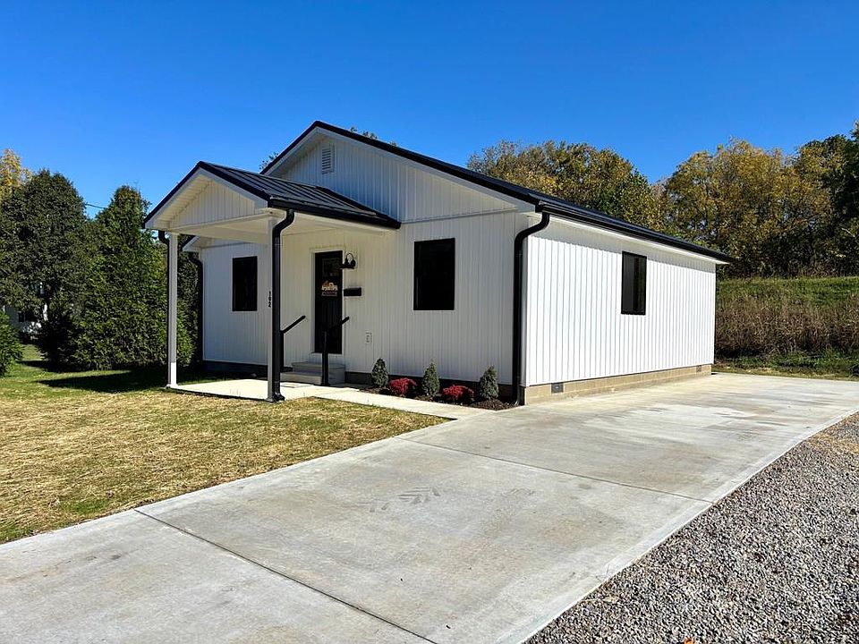 Brand new 2025 build! This beautiful farmhouse-style home offers 2 bedrooms and 2 full baths with a spacious open-concept living area perfect for entertaining or relaxing. The modern design features quality finished throughout, including a durable metal roof and a back wooden deck to enjoy the outdoors. Situated on 3 flat lots totaling 0.61 acres, the property provides plenty of space and privacy. A concrete driveway adds convenience, and the home is equipped with an efficient heat pump for year-round comfort. This charming new home is move-in ready and built to impress! Agent Owned